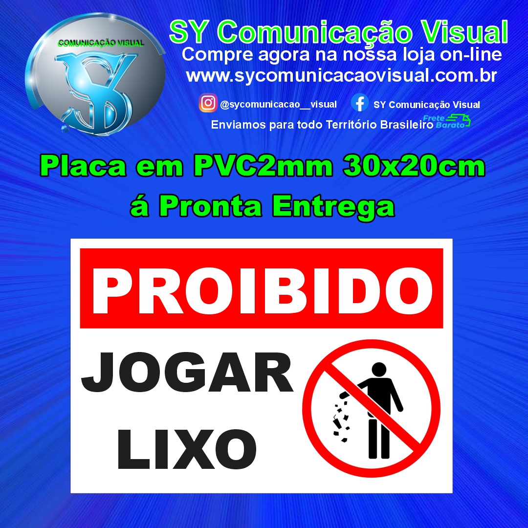 Produto:Placa em PVC 2mm Proibido Jogar Lixo.